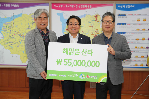 [아산=박명수 기자] 충남 아산시가 최근 코닝정밀소재(주)와 (사)초록우산 어린이재단 충남지역본부로부터 난방비 및 지역아동센터 크리스마스 선물비용을 위한 5500만원을 전달받았다.