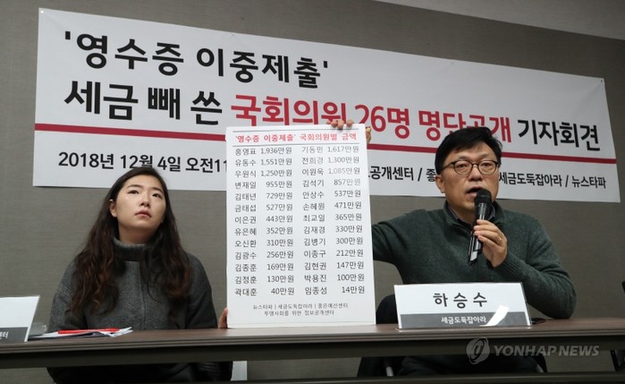4일 <뉴스타파>가 2016년 6월부터 2017년 12월까지 국회 예산으로 집행된 각 국회의원의 정책자료 발간과 의정보고서 발송비, 문자발송비 집행 내역을 같은 기간 해당 의원들이 중앙선관위에 신고한 정치자금 수입지출 내역과 교차 분석한 결과에 따르면, 영수증 중복 제출 등으로 국회 예산이나 정치자금 1억6000만원을 빼돌린 국회의원 26명 가운데 대다수가 민주당 소속 의원이었다.