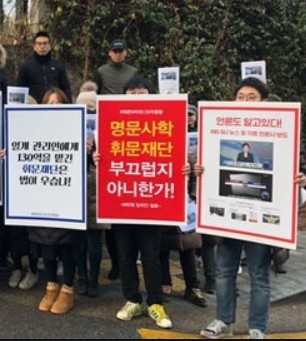 게시판 속 이미지는 휘문의숙 피해자라고 주장하는 이들의 시위 모습으로, 안타까운 사연을 지닌 이들의 시위 사진이 언론에 게재되며 이목을 집중시켰다.