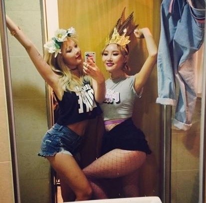 현아는 자신의 인스타그램에 화사와 함께 찍은 인증샷을 공개했다. 공개된 사진 속 현아와 화사는 화관가 왕관을 쓴 채 카메라를 응시하고 있다.