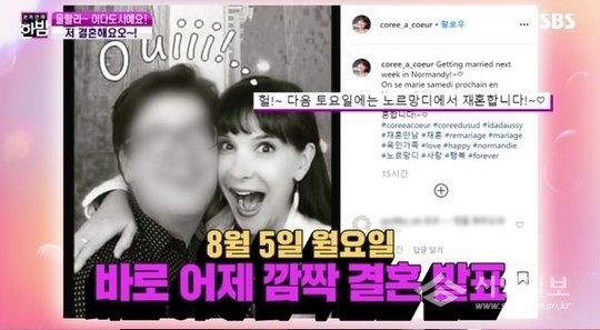 최근 방송된 SBS '본격연예 한밤'에서는 방송인 이다도시 재혼 소식이 전파를 탔다.