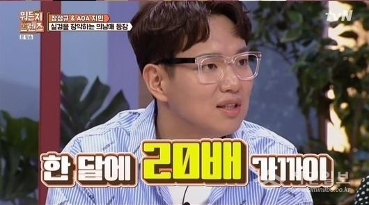 이어 프렌즈들은 "한달 수입이 어떻게 되느냐"고 물었고 장성규는 "진짜 말해 되는 거냐"라며 솔직하게 말하려고 했다 이에 프렌즈들은 "오 솔직하다. 멋지다. 금액으로 말하지 말고 아나운서 때보다 몇 프로가 더 올랐는지만 알려달라"고 말했다. 이에 고민하던 장성규는 "그때 보다 20배 더 번다"고 대답했다.