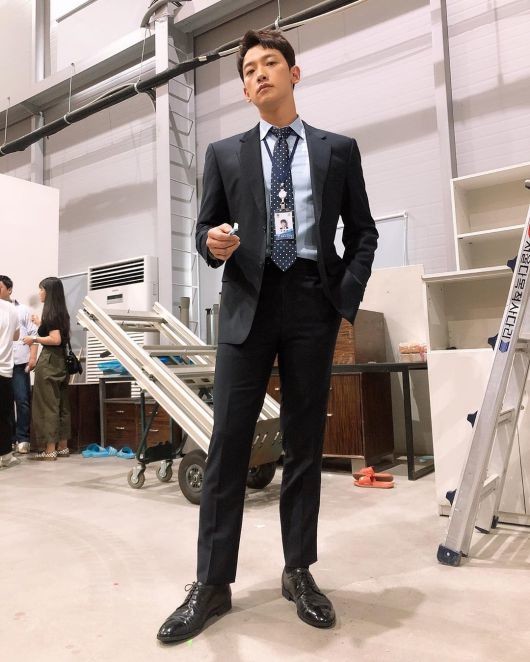 사진 속 정지훈은 검은 정장에 도트무늬 네이비색 넥타이를 매고, 목에는 검사증을 걸고 있다. 정지훈은 한 손을 주머니에 넣고 삐딱하게 서있다. 이어진 사진에는 주머니에 넣었던 손을 빼서 카메라를 향해 들고 V를 하고 있다.