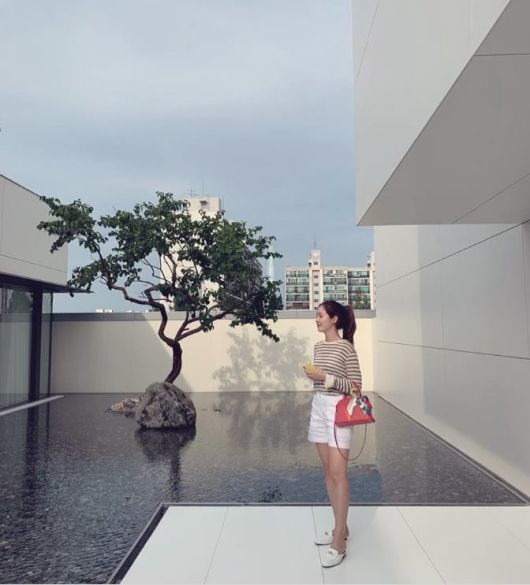 성유리는 6일 자신의 인스타그램에 근황이 담긴 사진 한 장을 게재했다. 공개된 사진 속 성유리는 스트라이프 티셔츠에 흰색 반바지로 여름 패션을 완성했다.