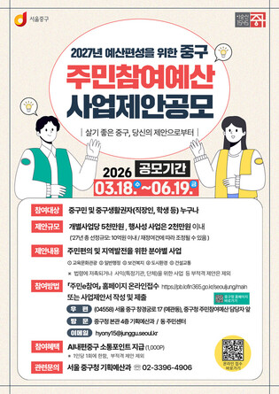 서울 중구, 2027년 주민참여예산 주민제안 접수