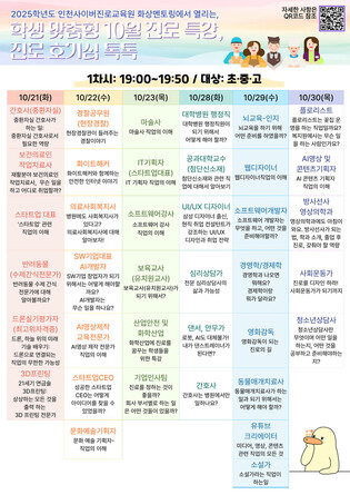 인천시교육청, 10월 학생 맞춤형 진로·직업 특강 ‘진로 호기심 톡톡’ 운영