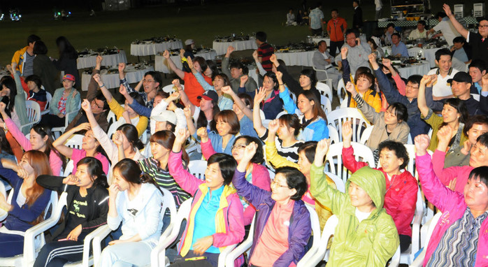 ▲ 한길안과병원 춘계 MT에서 직원들을 위해 마련된 레크리에이션 시간에 직원들이 즐겁게 참여하고 있다. |