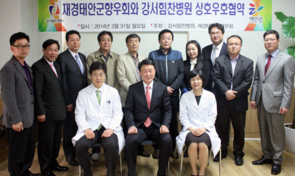 이번 협약을 통해 강서힘찬병원은 재경태안군향우회의 회원들뿐만 아니라 회원가족에게도 전문적인 의료서비스를 제공키로 했다. 또 건강강좌와 관련 자료 배포 등의 서비스도 함께 제공키로 하며 건강증진을 위해 협조할 것을 밝혔다.
