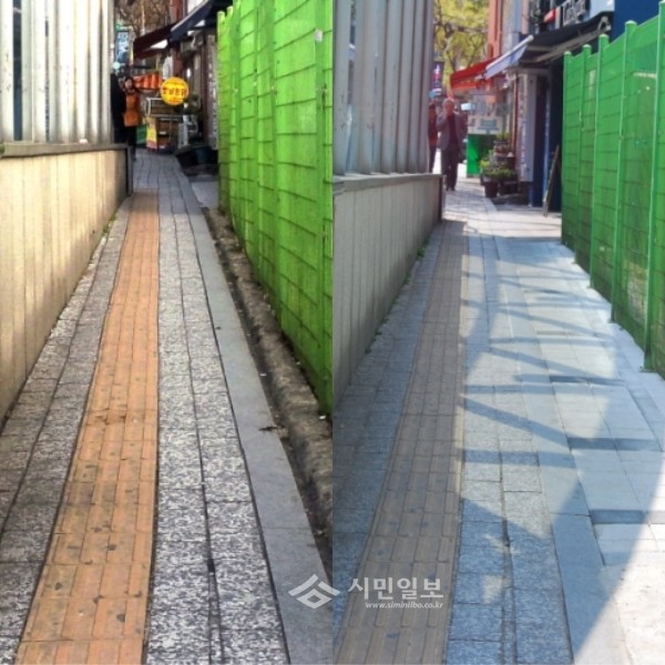 | ▲ 약수역 5번 출구옆 보도 확장공사 전·후 비교 사진. | ||