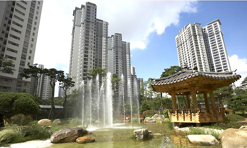 GS건설이 지은 아파트 ‘일산자이’는 ‘2011년 세계조경가대회’서 대상을 수상해 한국 아파트 조경기술이 세계적으로 인정받았을 정도로 단지 내 조경수준은 국내 최고라 해도 손색이 없다. 단지 내에 물, 산 등을 테마로 설치된 미니석산인 진경산수와 분수 실개천 등으로 꾸민 레이크프라자, 잔디광장 등 블록별로 차별화시켰으며 자연을 그대로 옮겨 놓은듯한 수령 100년 이상의 적송 1500그루를 포함해 명품 소나무 2200여 그루가 식재되어 있어 마치 오래된 소나무 공원에 온 듯한 느낌을 받도록 꾸몄다.