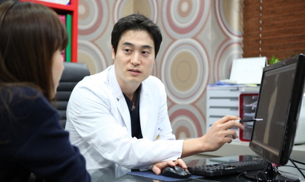 | ▲ 서울휴재활의학과 김동현 원장이 환자 상담을 하고 있다. | ||