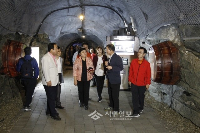 | ▲ 임시회 기간 중 광명동굴을 방문한 광진구의회 기획행정위원회 위원들이 이야기를 나누고 있다.(사진제공=광진구의회) | ||
