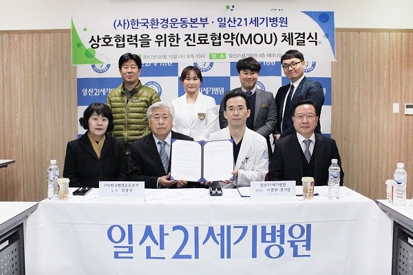이날 업무협약 체결에는 (사)한국환경운동본부 양광선 총재, 주성희 이사와 일산21세기병원 고광원 병원장, 최정환 행정부원장 등이 참석했다.