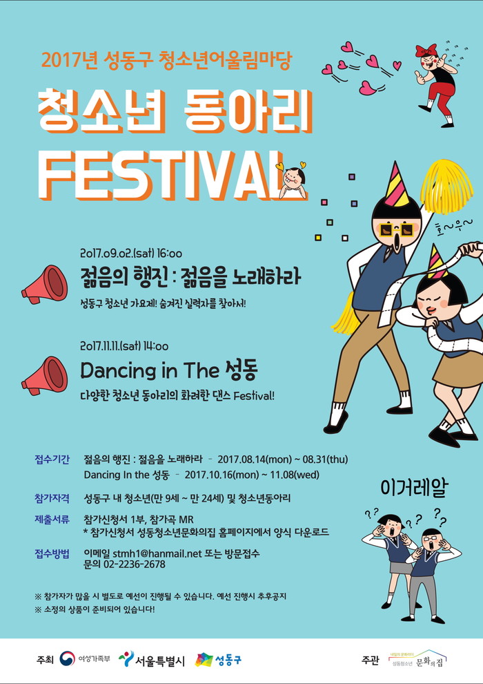 정원오 구청장은 “청소년들이 학업스트레스에서 벗어나 다양한 즐길거리를 제공하고, 주체적으로 참여할 수 있도록 청소년 동아리를 지원해 건전한 청소년 문화육성을 위해 다방면으로 노력할 것”이라고 밝혔다.