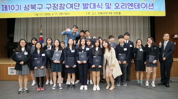 구는 최근 열린 '2018년 성북구 청소년 구정참여단 발대식 및 오리엔테이션' 행사를 시작으로 제10기 청소년 구정참여단의 본격적인 활동을 알렸다.