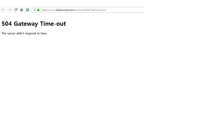 21일 새벽 0시22분 기준 카카오톡 홈페이지는 접속 시도시 504 gateway Time-out이란 메세지가 뜨고 있는 상태다. 이에 카카오톡 홈페이지접속이 불가능 한 상태이다.