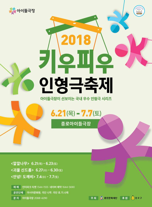 [시민일보=이대우 기자] 서울 종로구가 21일부터 어린이전용극장 ‘종로아이들극장’에서 어린이와 온 가족이 함께 즐기는 ‘2018 키우피우 인형극축제’를 개최한다.
