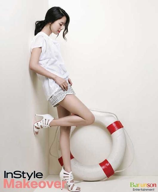 화보 속 문채원은 여름을 콘셉트로 시원한 복장을 하고 있다.
