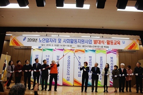 2019년 용인시기흥노인복지관 노인일자리 및 사회활동지원사업 참여자 401명은 노-노케어, 학교급식도우미, 공공시설 관리지원, 복지시설봉사, 교구위생관리도우미, 1-3세대 강사파견의 공익형 사업과 보육교사 도우미의 사회서비스형 사업과, 시장형 사업인 반려동물 수제간식 전문점 장수하개까지, 지역사회 내 학교, 어린이집 등 공공기관 지원과 낮 시간 홀로 보내시는 어르신 가정방문을 통한 안부확인 등의 다양한 활동을 전개해 나갈 예정이다.