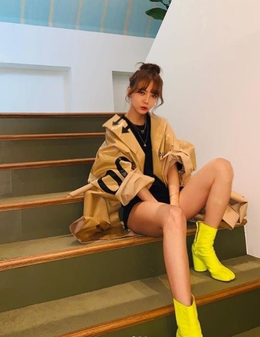 공개된 사진 속 지민은 계단에 걸터 앉은 채 카메라를 응시하고 있다. 소멸할 것 같이 작은 얼굴 속에 이목구비가 꽉 차있다. 명불허전 각선미 역시 시선을 모은다.