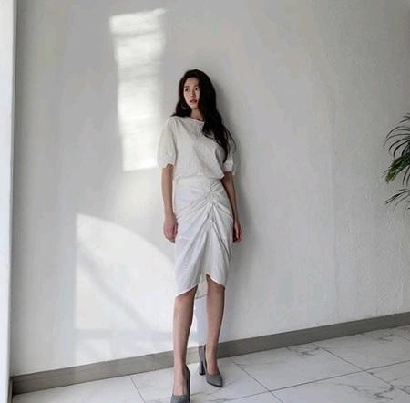 원피스와 하이힐, 긴 생머리 헤어스타일만으로도 남다른 비주얼을 보여주며 시선을 사로잡는다.