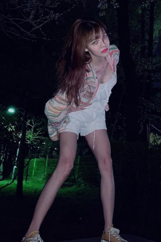 공개된 사진 속 지민은 야심한 밤 아무도 없는 놀이터에서 놀고 있는 모습. 지민은 핫팬츠에 쇄골라인을 노출한 상의를 입고 포즈를 취하고 있다. 소멸할 듯 작은 얼굴 크기가 시선을 끈다.
