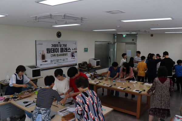 이날 행사는 일산서구청소년수련관 3층 메이커 스페이스 공간에서 진행되었다. 약 60여명의 가족들의 함께 가죽공예를 하면서 생명의 흔적에 가치를 불어넣는 활동을 하였다.