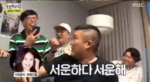 전소민은 ‘안녕하세요, 유노윤호 입니다’라는 말에 “네? 어머 안녕하세요”라며 급 바뀐 목소리로 말했다.