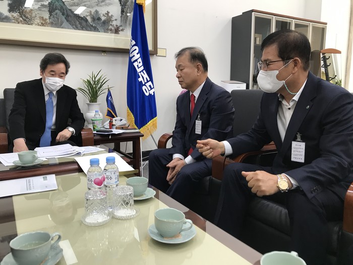 | ▲ 이상익 함평군수(우측)가 이낙연(좌측) 민주당 대표실을 찾아가는 등 내년도 정부예산 확보 ‘총력’을 펼치고 있다. (출처=함평군청) |