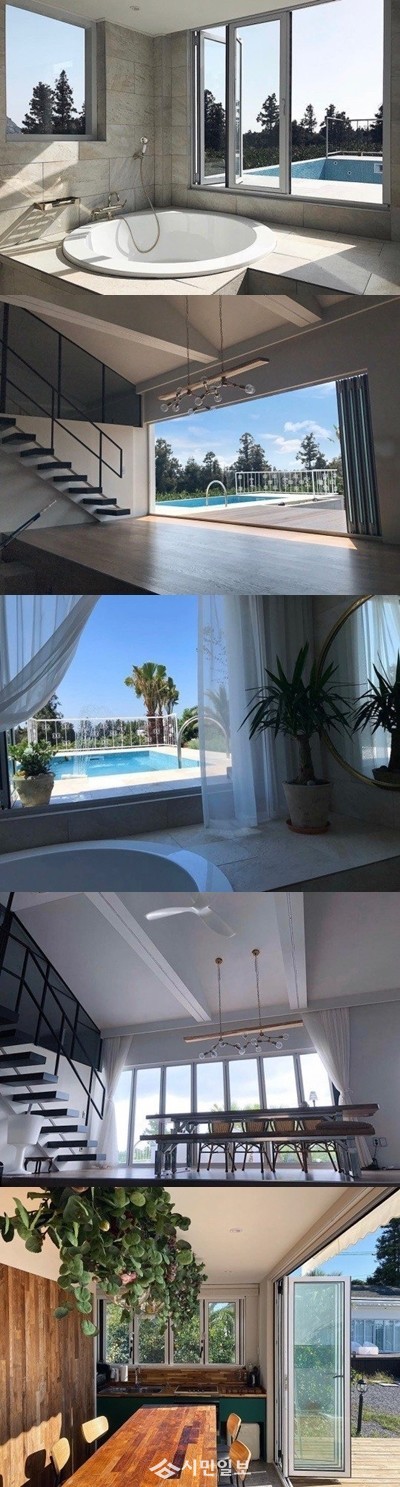 공개된 사진 속에는 풀장이 달린 커다란 집 내부 모습이 담겨 시선을 사로잡았다.