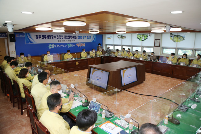 이날 보고회는 코로나19 방역지침을 준수한 가운데 진행됐으며 광주 전투비행장 이전 영향, 이전 반대 비전 및 전략, 특별법 개정 대응 등에 관한 보고를 듣고 이에 대해 논의하는 시간을 가졌다.