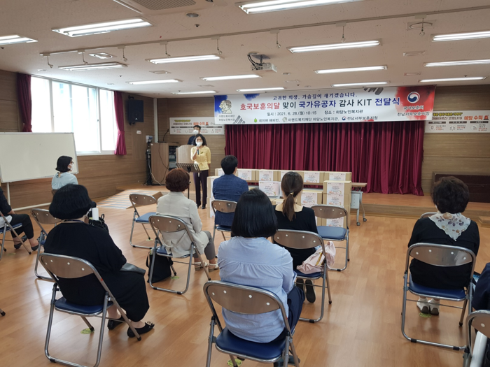 | ▲ 하당노인복지관[이랜드] 국가유공자 감사키트 전달(출처=전남서부보훈지청) |