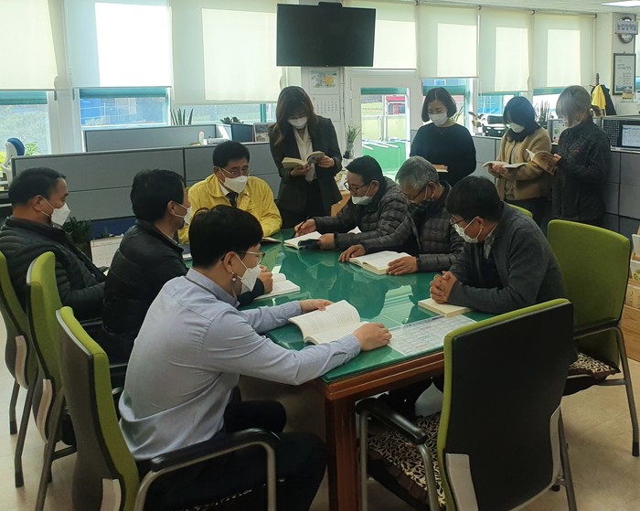 농업정책과는 ‘코로나 시대 책으로 코로나 블루 극복’이란 목표의식 아래 직원 개인이 소장하고 있는 책 중 추천하고 싶은 책을 가지고 와서 매달 개인별 1권씩 독서한 내용에 대해 한줄평을 작성하여 생각을 공유하고 다 읽은 책은 서로 돌려보는 시간을 가지고 있다.