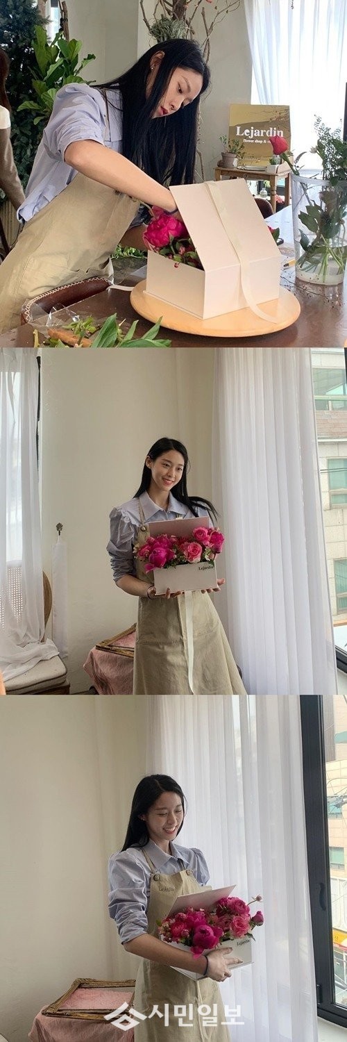 공개된 사진 속 설현은 부모님 결혼기념일을 맞아 꽃으로 선물을 직접 만들고 인증샷을 남기는 모습으로 훈훈함을 자아냈다.