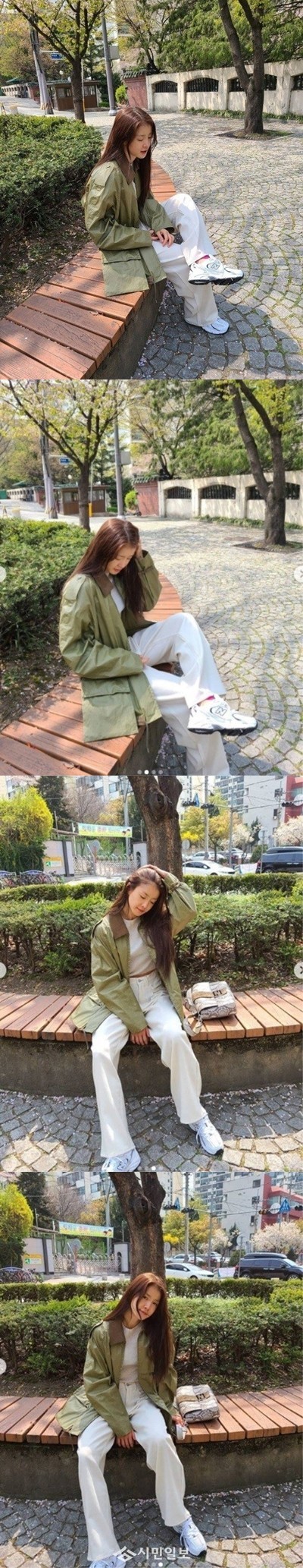 공개된 사진 속 이시영은 여전한 동안 미모를 뽐내며 공원 벤치에 앉아 화이트룩에 카키색 재킷으로 패셔니스트의 면모를 드러내 팬심을 사로잡았다.