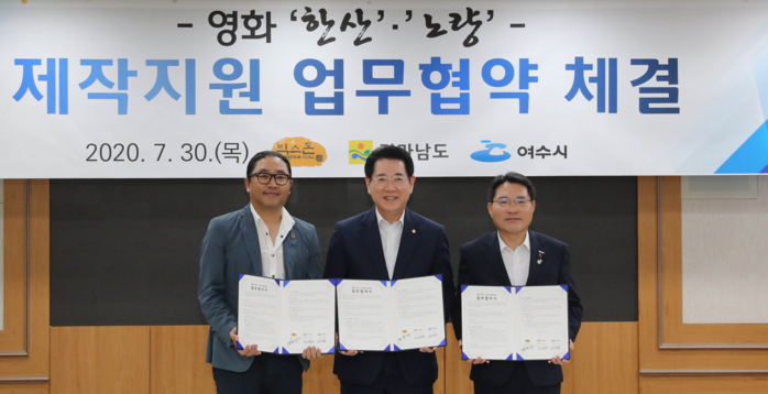 전라남도는 30일 전남도청 정약용실에서 김영록 전남도지사와 권오봉 여수시장, 김한민 영화감독 등이 참석한 가운데 제작지원과 전라남도 홍보를 위한 업무협약을 맺었다고 밝혔다.