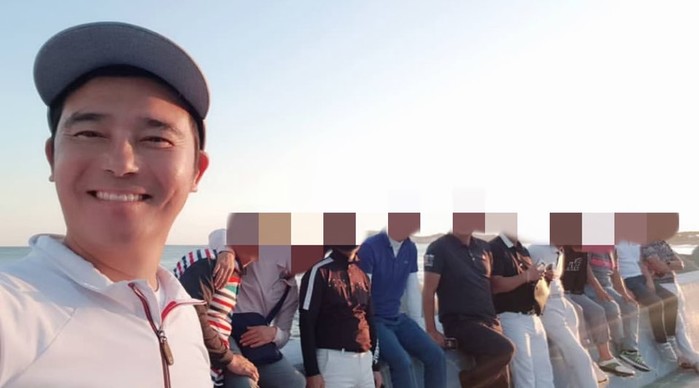 공개된 사진 속 임창정은 고향(경기도 이천)에 살던 비연예인 친구들과 함께 웃으며 카메라를 쳐다보고 있다.