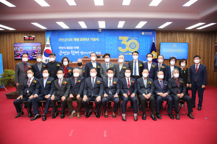 무안군의회(의장 김대현)는 지난달 29일 군의회 본회의장에서 ‘무안군의회 개원 30주년 기념식’을 개최했다.