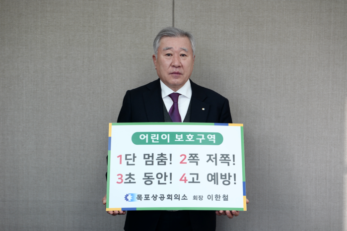 이한철 목포상공회의소 회장이 27일 ‘어린이 교통안전 릴레이 챌린지’에 동참했다.