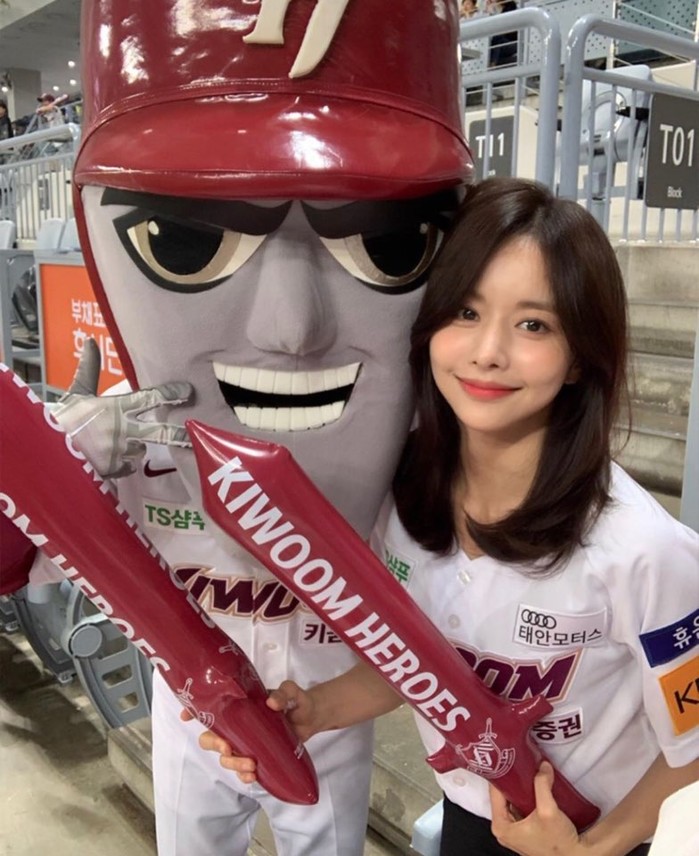 공개된 사진 속 한보름은 키움히어로즈 유니폼을 입은 채 턱돌이와 함께 미소를 짓고 카메라를 쳐다보고 있는 모습이다.