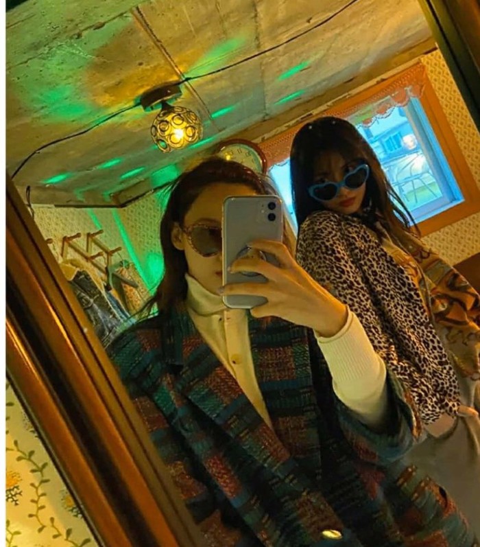 공개된 사진 속 모모는 나연과 카메라에 포착됐다.