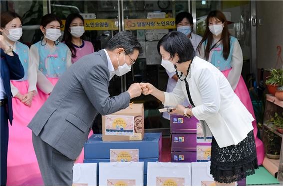 권오봉 시장과 간부공무원은 장애인시설, 노인요양시설, 아동복지시설, 경로당 등을 방문해 종사자와 회원을 격려하고 위문품을 전달했다.