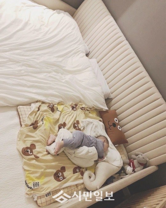 이필모 아내 서수연은 자신의 인스타그램을 통해 "자다 깨 뒤집어 우는 통에 좁아져버린 아기침대 졸업시키고 담호방에 패밀리침대 넣어드렸어요 괜히 저 혼자 신나서 팔베개 해서 재웠더니 하루종일 팔이 찌릿찌릿 #맘껏뒤집으렴"이라는 글과 함께 한 장의 사진을 게재했다.