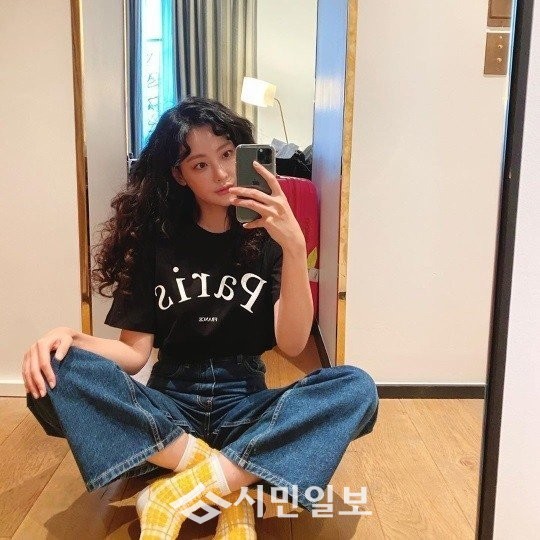 공개된 사진 속 오연서는 검은 티셔츠에 통이 넓은 청바지를 입고 바닥에 앉아 있는 거울샷을 찍는 모습이 담겨 시선을 사로잡았다.