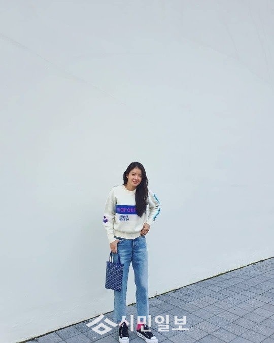 공개된 사진 속 이시영은 명품 맨투맨 티셔츠에 헐렁한 청바지를 입고 조그마한 명품 가방을 손목에 걸친 모습으로 시선을 사로잡았다.