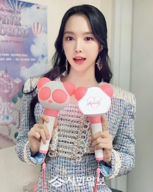 손나은은 에이핑크 인스타그램 계정에 사진과 함께 "판다봉을 든 우리핑크. 비하인드 도착"이라고 글을 남겼다.