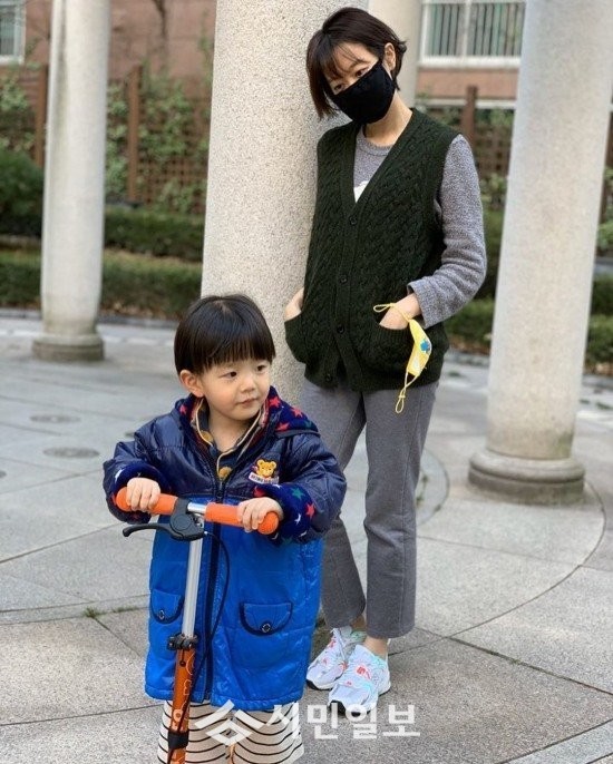 공개된 사진에는 아들과 아파트 놀이터로 외출한 문지애의 모습이 담겨 눈길을 모았다.