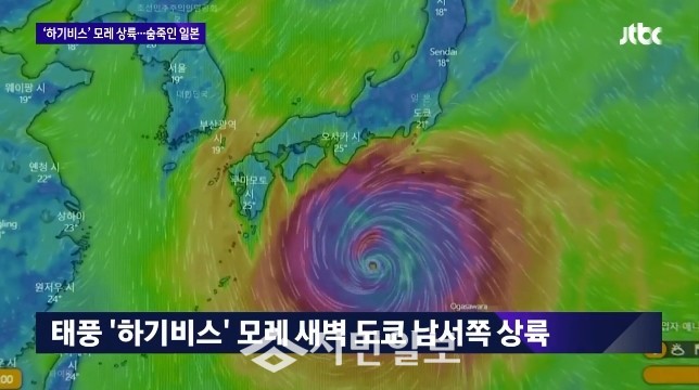일본 기상청은 지난 10월 11일 하기비스가 이날 오전 6시45분 니시노시마 서쪽 380㎞ 해상에서 북북서쪽 일본 열도를 향해 시속 25㎞ 속도로 이동 중이라고 밝혔다.