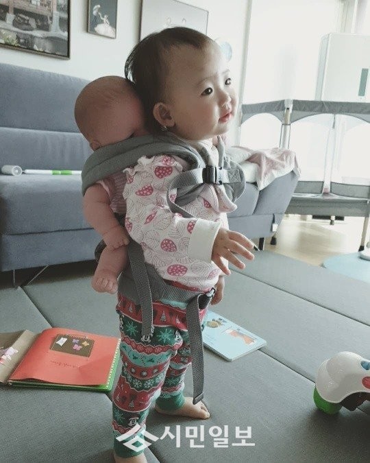 공개된 사진 속에는 인형을 야무지게 업고 있는 로아 양의 모습이 담겨 훈훈함을 자아냈다.