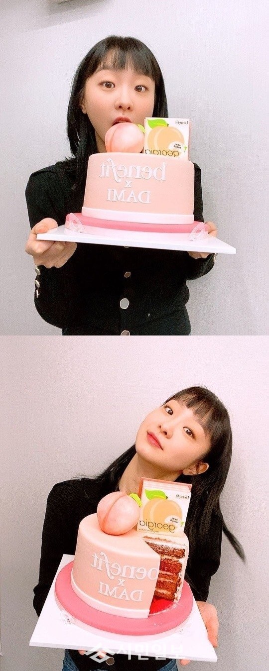 공개된 사진 속 김다미는 커다란 케이크를 들고 상큼발랄한 미모를 뽐내며 복숭아과 같은 분홍빛 아우라를 과시해 팬심을 사로잡았다.